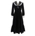 Vintage Robe Out-fit Années 40 Noir qui se suffit à elle même pour obtenir un look rétro super chic. Mention spéciale pour les manches bouffantes et les broderies bluffantes.